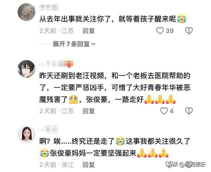 7月30日,张俊豪母亲发布了讣告;“女儿你一都走好,在哪里再也莫得难受,你一定要过的幸福,这辈子姆妈莫得督察好你,下辈子你还来姆妈这里,好吗?”