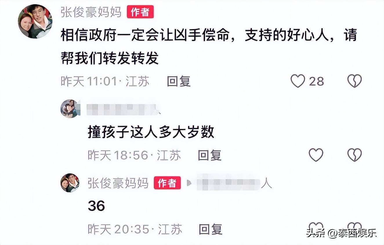 现时还有许多网友温柔凶犯有莫得被持起来,对此字据张俊豪的母亲流露,在车祸今日,闹事者就被甩掉起来了, 还流露闹事者本年36岁。 不外貌似现时还莫得比及案件的最终刑罚,昨天上昼张俊豪姆妈还在驳倒区号令诸位网友,但愿人人多多转发早日让凶犯偿命。